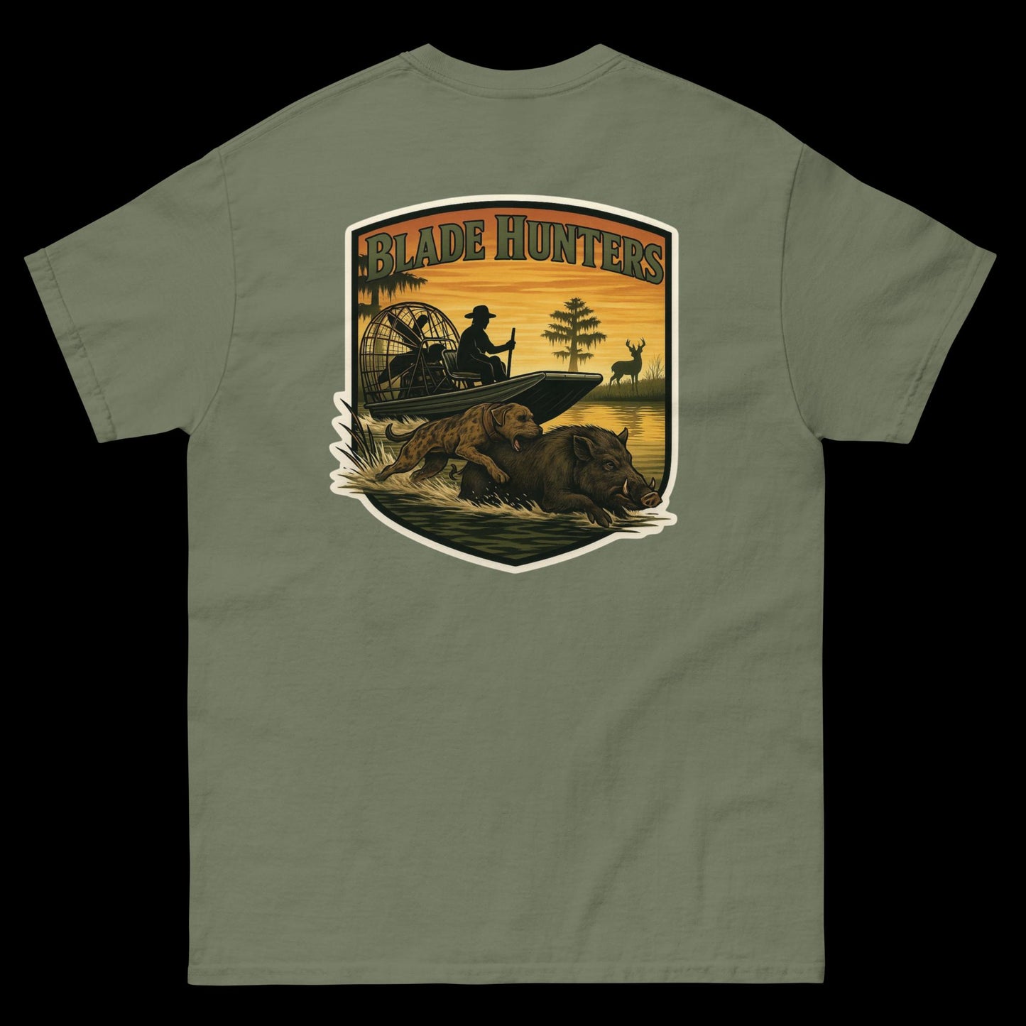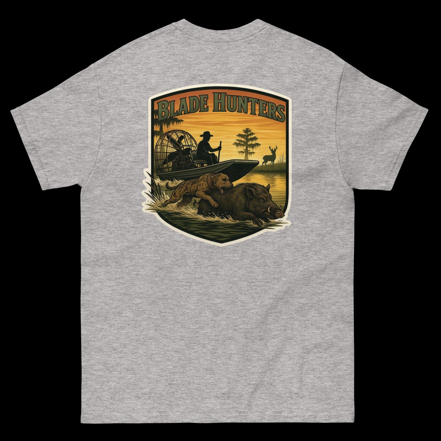 Blade Hunters Cowboy Airboat Hog Hunt Tee - Swamp Dog & Wild Boar Chase Shirt