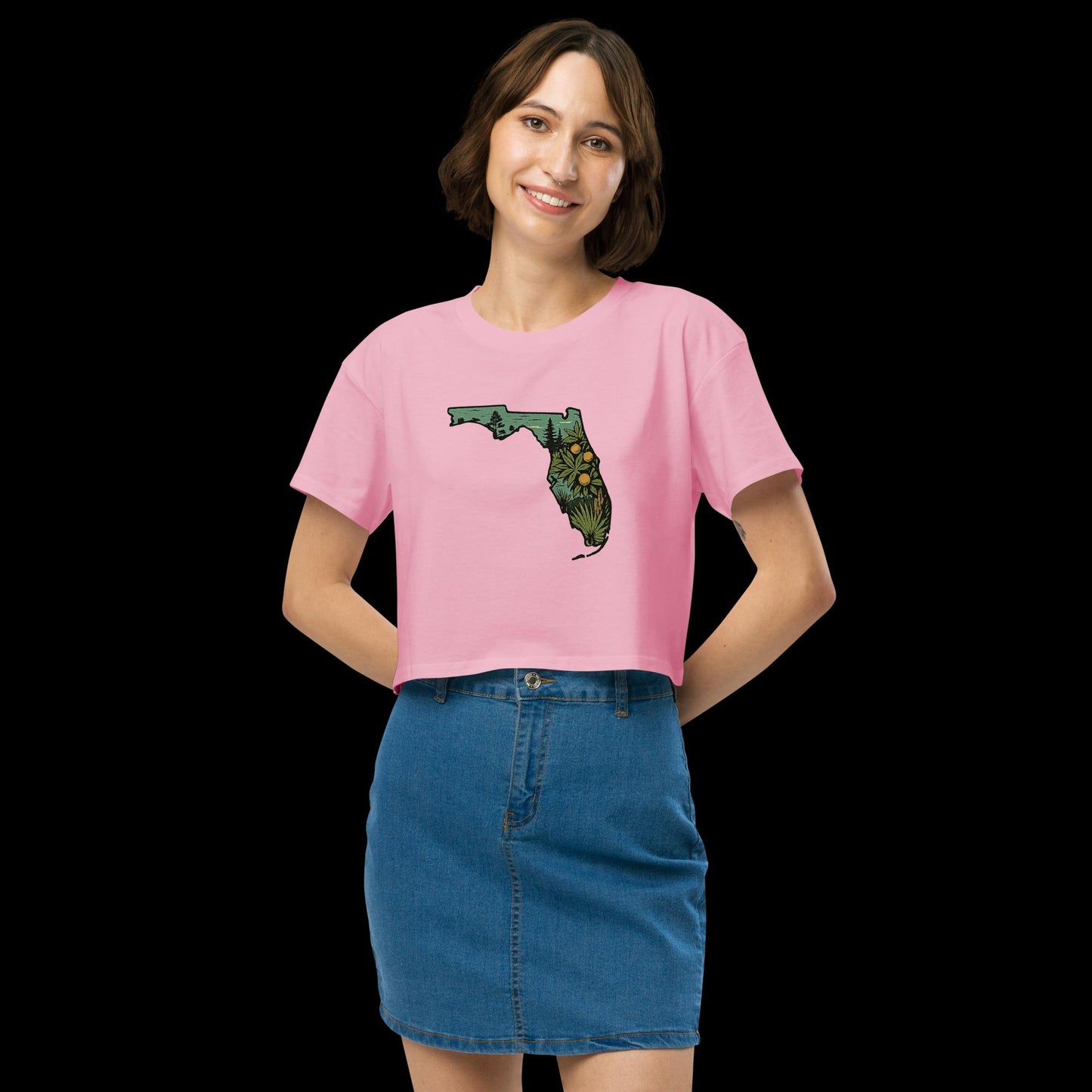 This cropped tee brings Florida sunshine to your wardrobe—literally. Featuring the iconic shape of Florida filled with a lush orange grove scene, it’s the perfect blend of state pride and citrus season charm. Lightweight and comfy, this relaxed-fit crop top is ideal for market days, summer strolls, or sipping cold orange juice under the sun.
