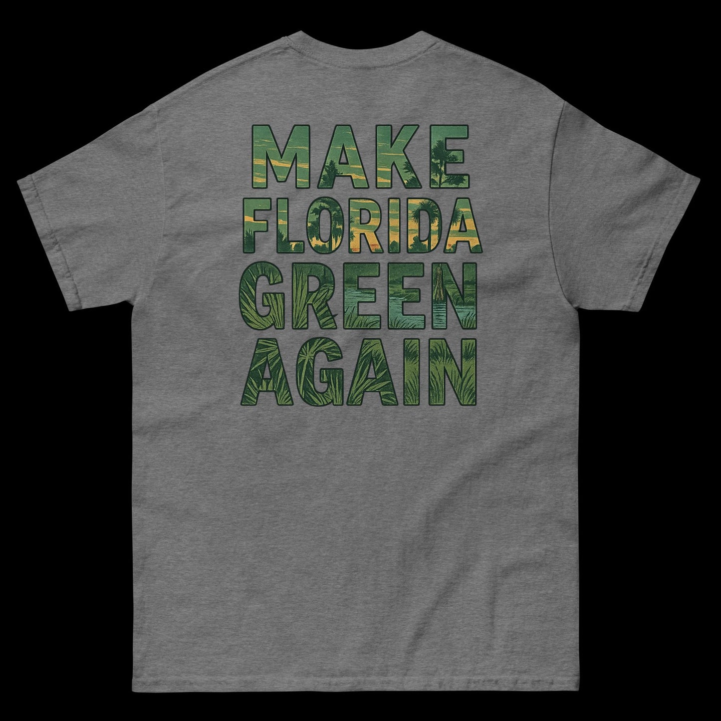 Bring back the wild. The Make Florida Green Again tee blends bold activism with Southern swamp style—featuring a scenic silhouette filled with Florida’s untouched wilderness. This shirt is more than fashion—it’s a grassroots movement. Perfect for eco-warriors, Florida natives, and lovers of old-school wild spaces.